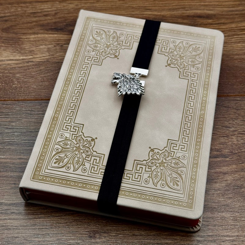 Add a touch of elegance to your books whilst securely holding your place with our beautiful Game of Thrones House Stark Dire Wolf Elastic Bookmark.